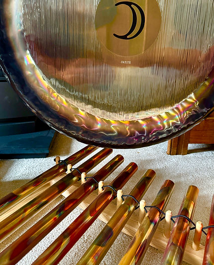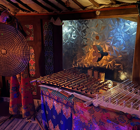 Soundscapes weave together a blend of ethically sourced instruments that all come with their own stories. The blend of soft and gentle sounds created by hand made chimes resonate with the delicate touch of flumes on deeply grounding gongs. Ethereal bowls and crystal harps bring a touch of magical sparkle to the yurt experience. Vicky's enthusiasm for a unique soundscape has lead her to search far and wide to source unusual instruments. Her collection includes very special handmade pieces made by Jochen Fassbender, Martin Blase and a custom made Ethereal Wings harp.